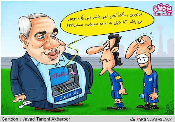 دوستان پرسپولیسی به کاریکاتوری که ما راجع به آقای رویانیان نوشته بودیم، اعتراض کردن و گفتن چرا طرف یه تیم رو میگیری و اینا ... منم گفتم شما بفرستید، من میذارم و نمونه ش همین کاریکاتور که سینا سعیدی فرستاد و با اینکه تاریخ گذشته بود باز هم میذاریم :