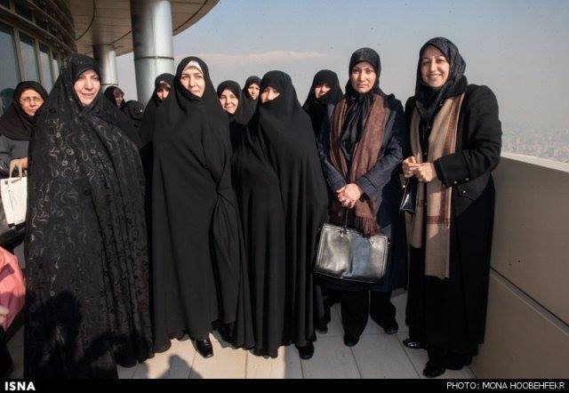 از راست به چپ: همسر جواد ظریف، همسر اسحاق جهانگیری، همسر رییس جمهور و همسر حسین فریدون