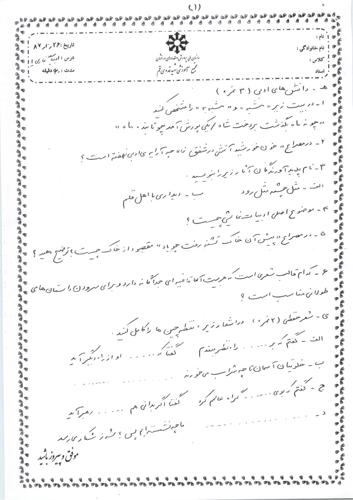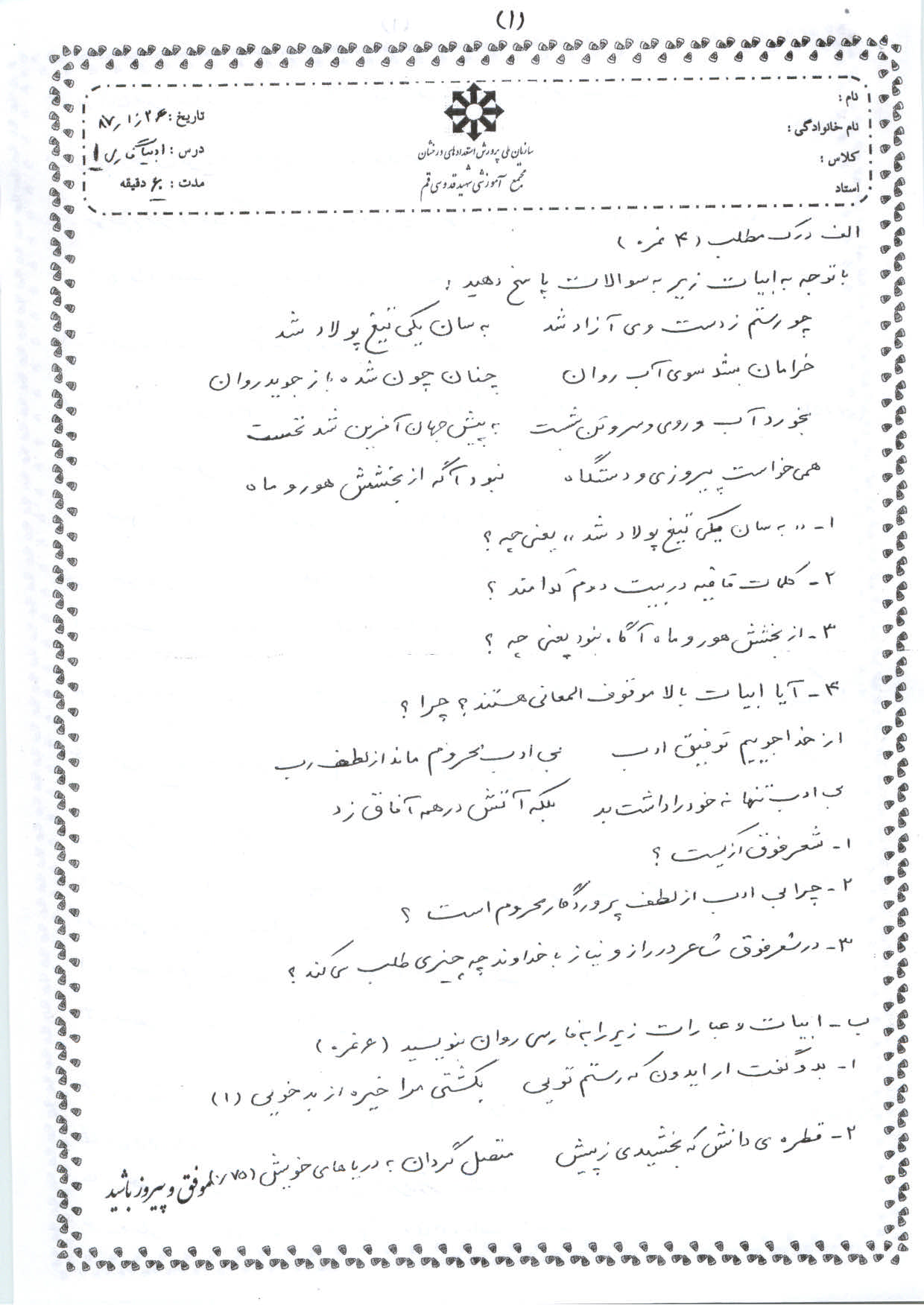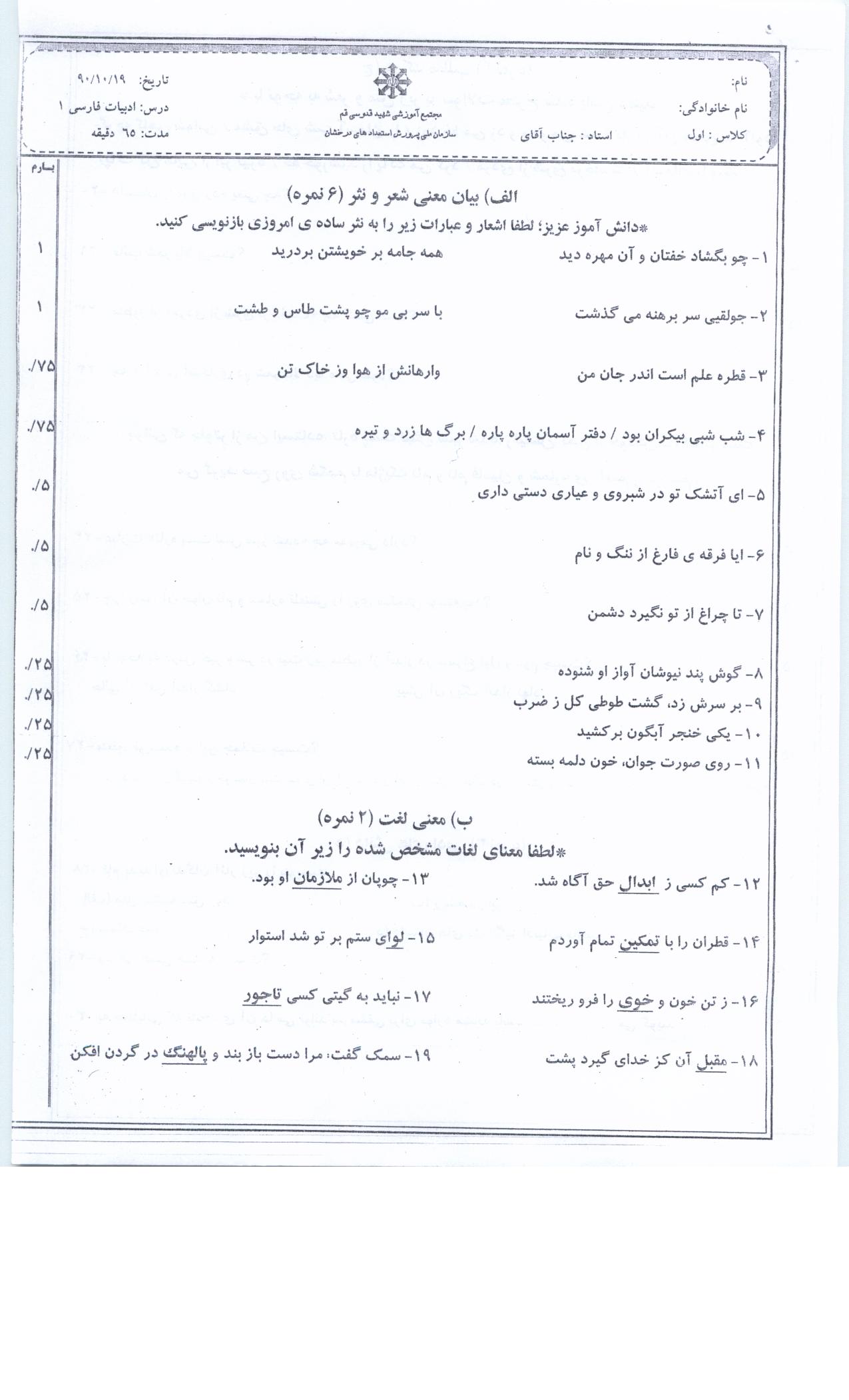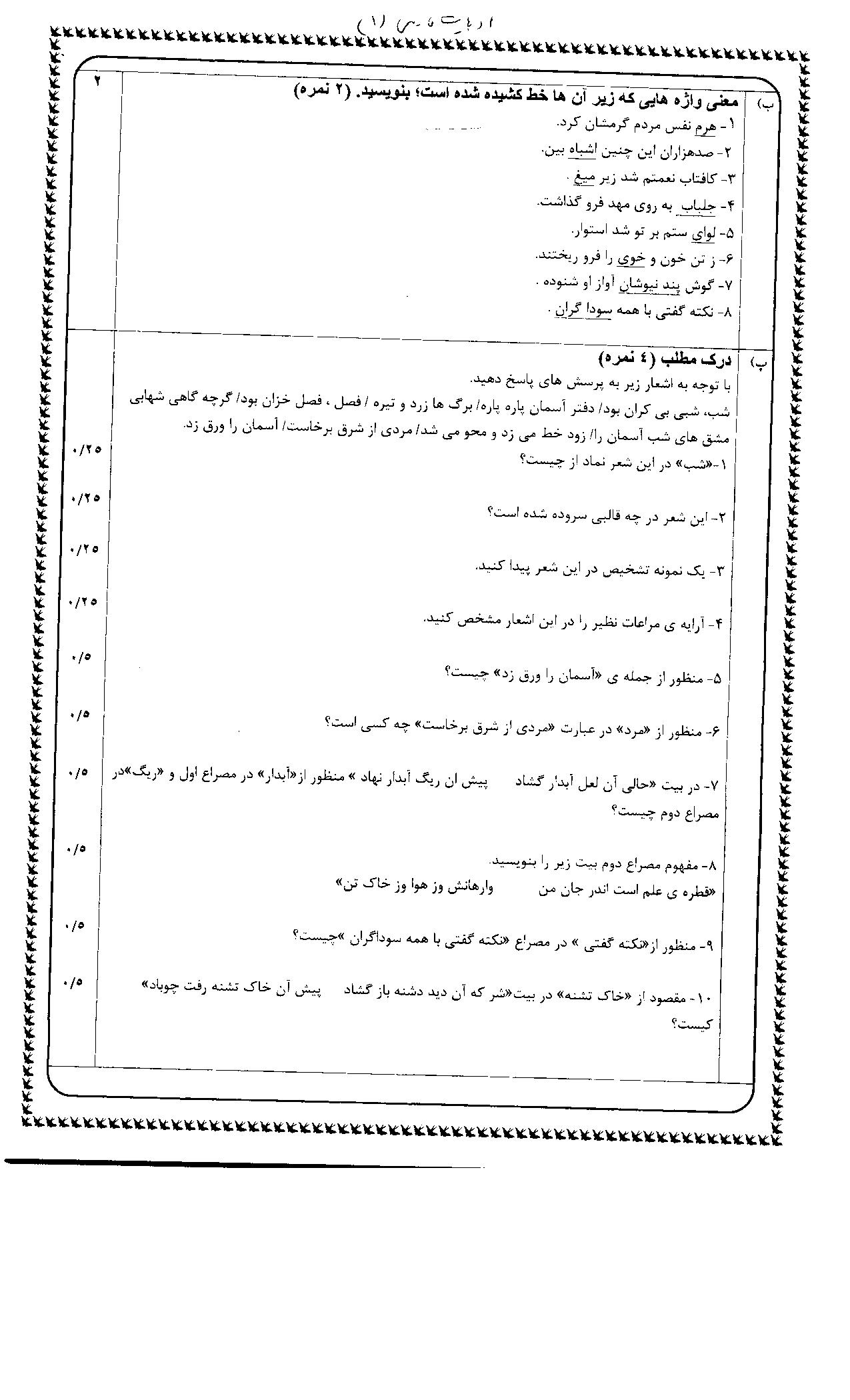 نمونه سوال 1