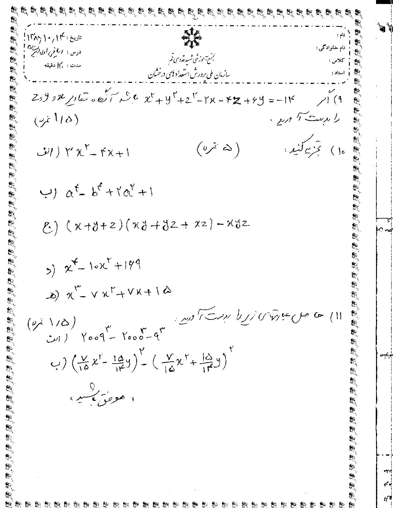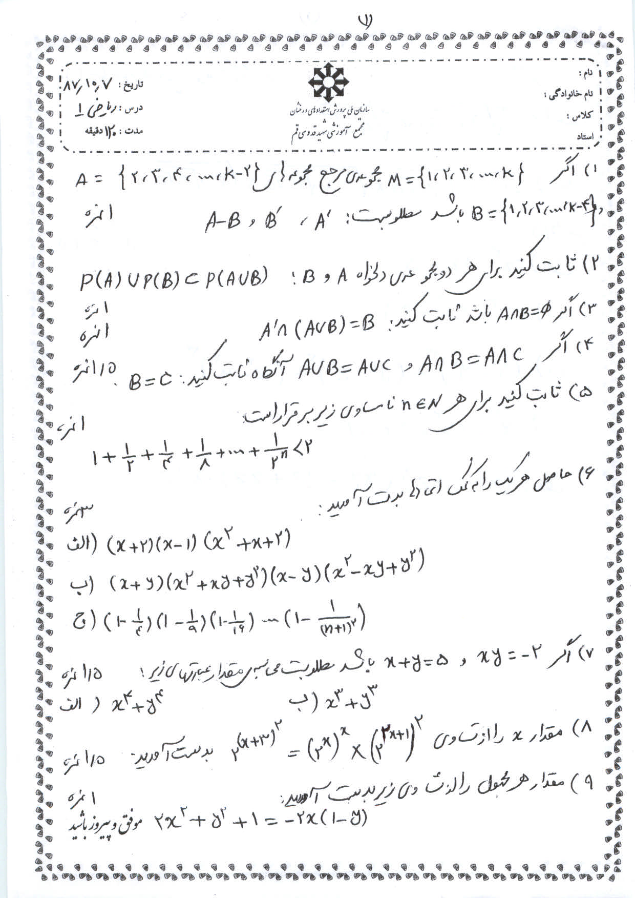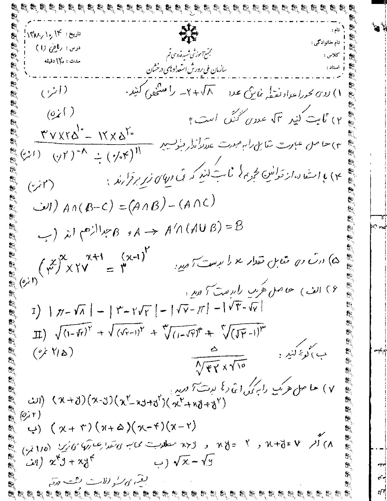 نمونه سوال قرآن و تعلیمات دینی نوبت اول