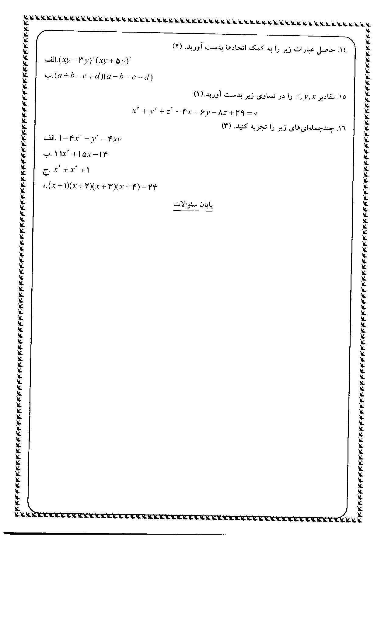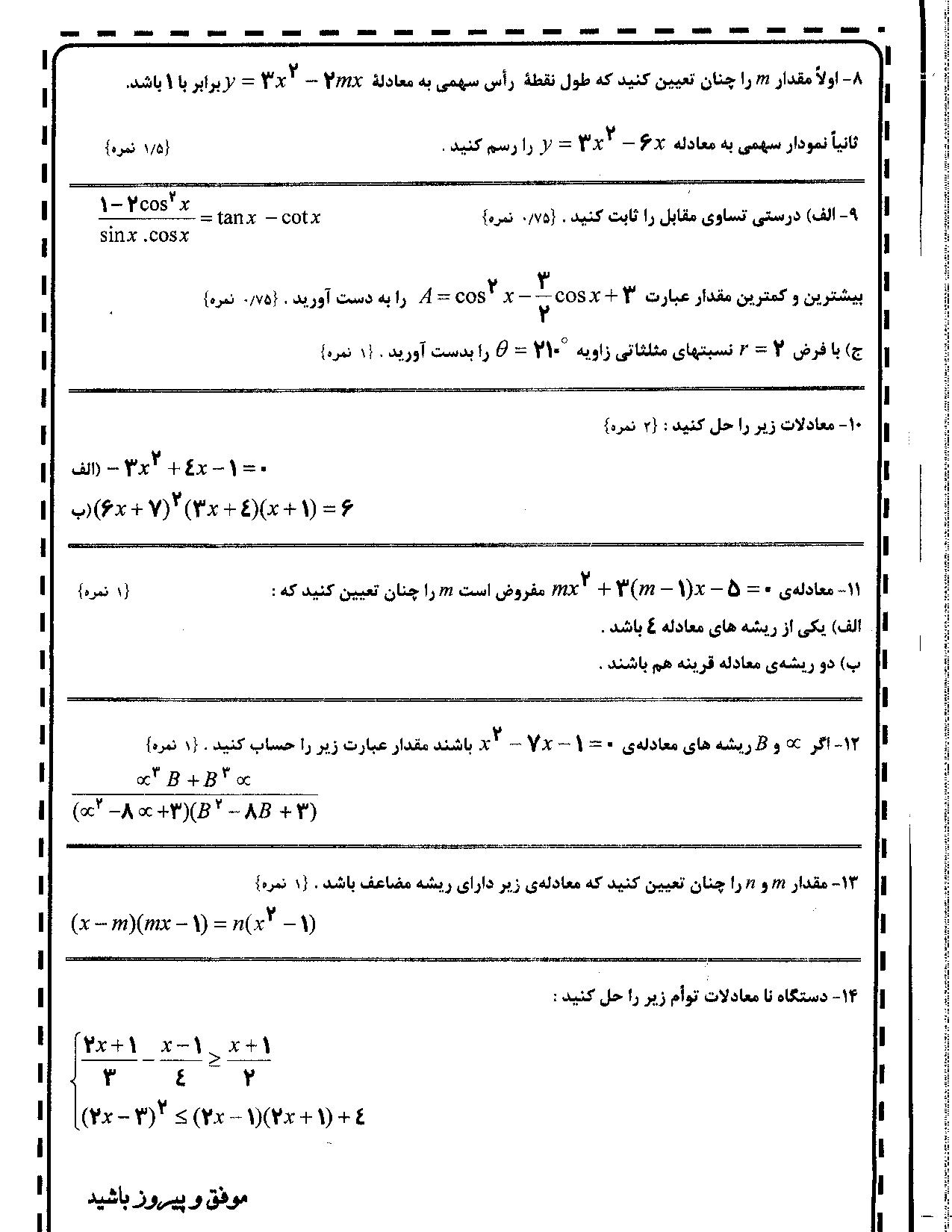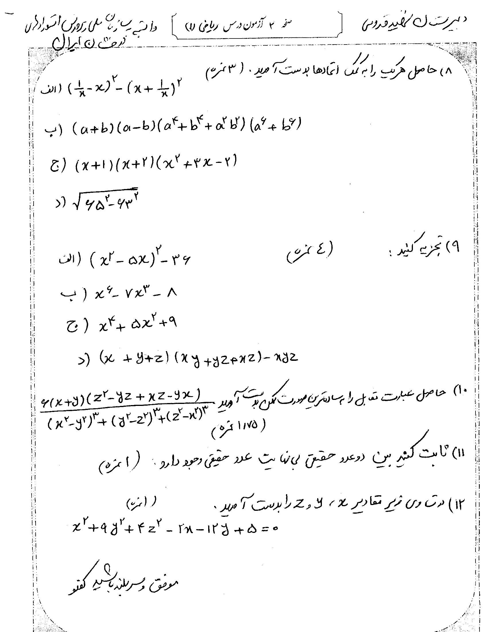 نمونه سوال قرآن و تعلیمات دینی نوبت اول