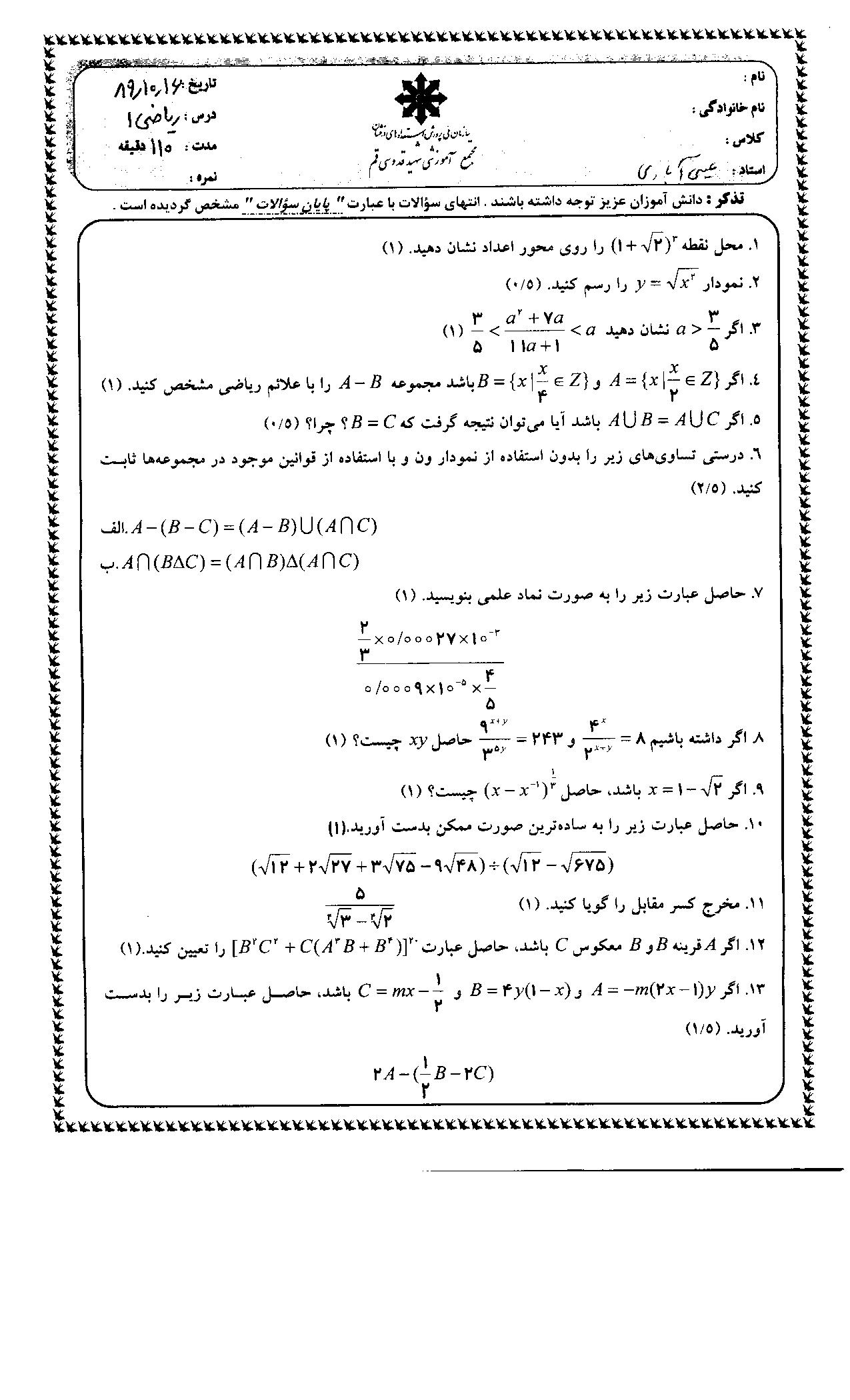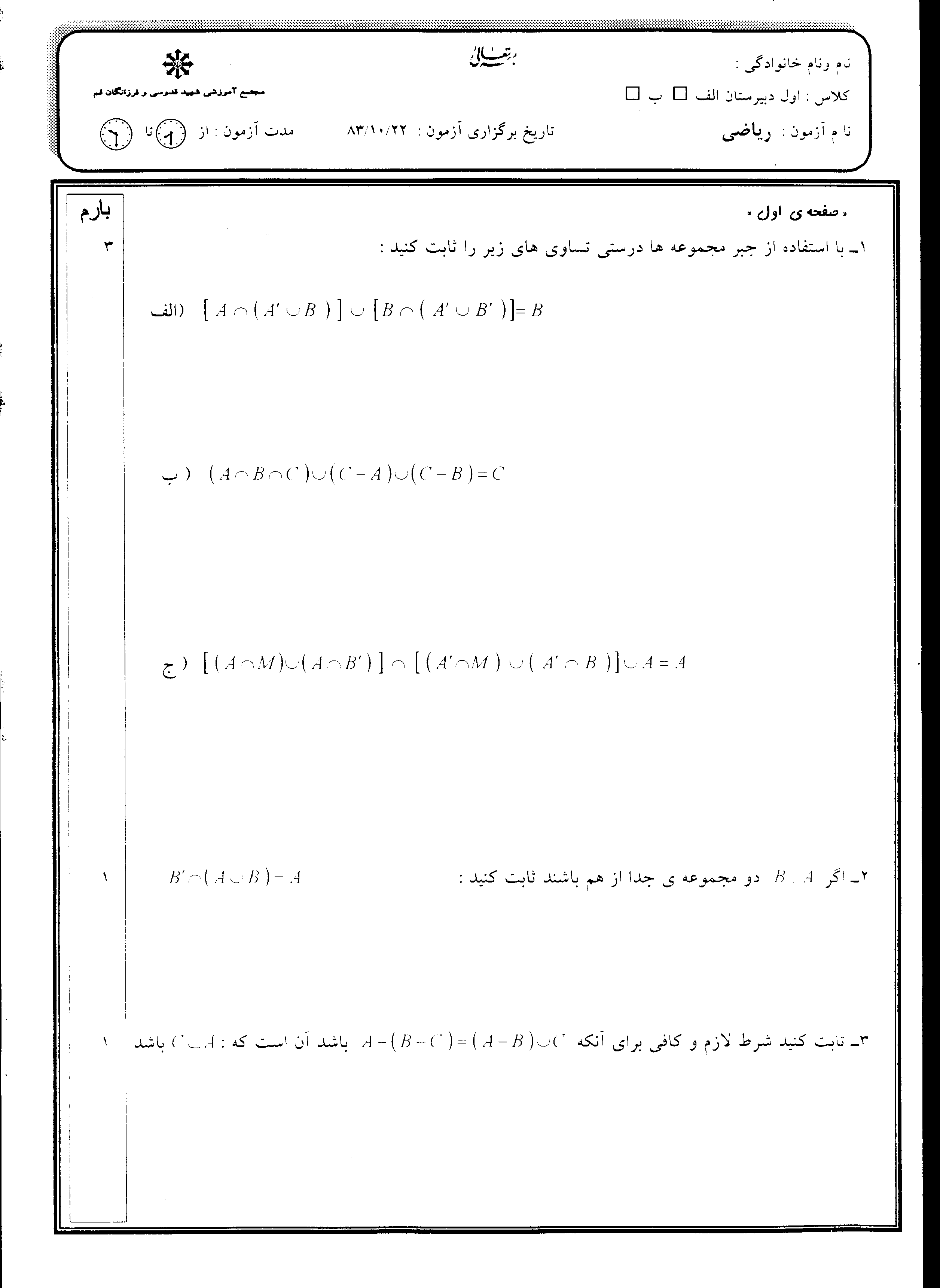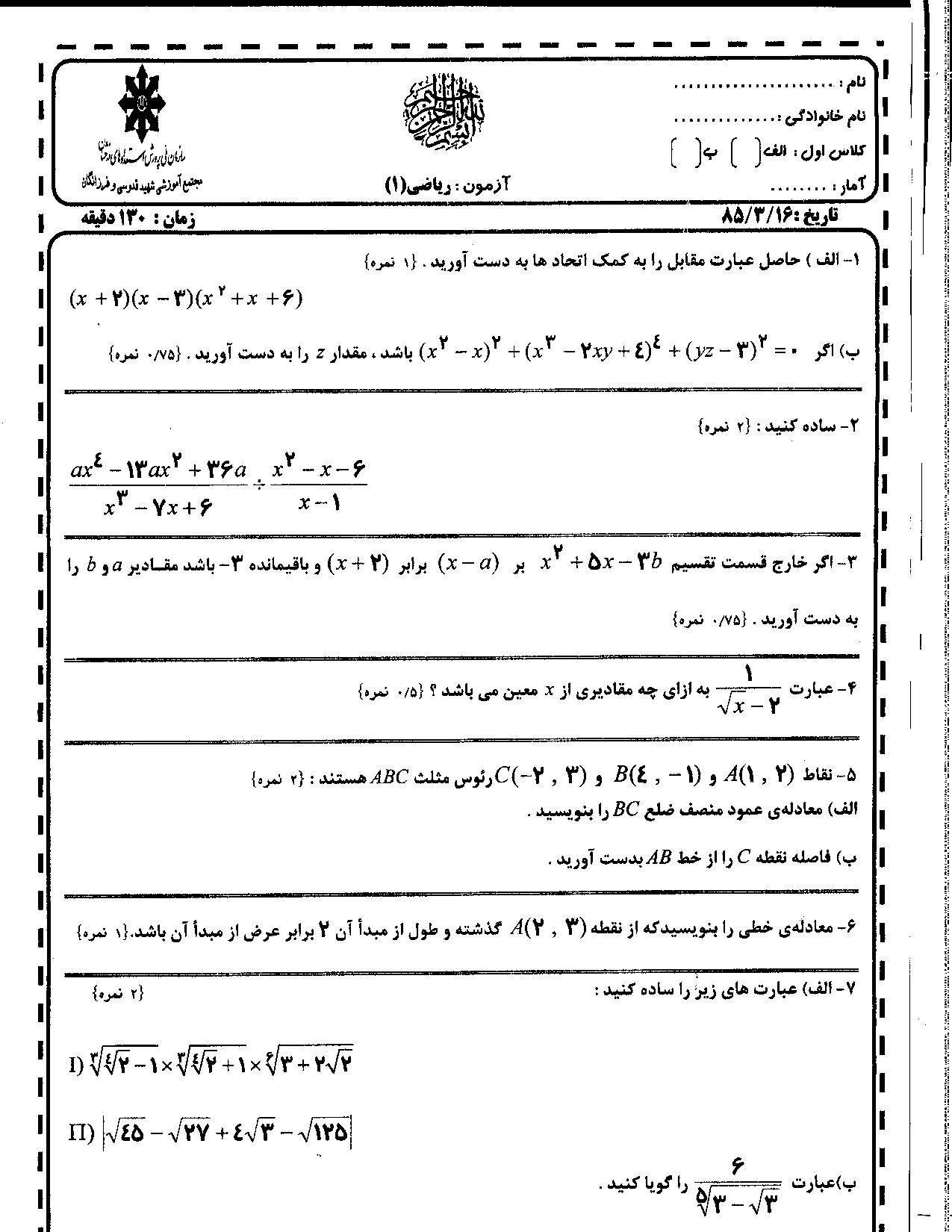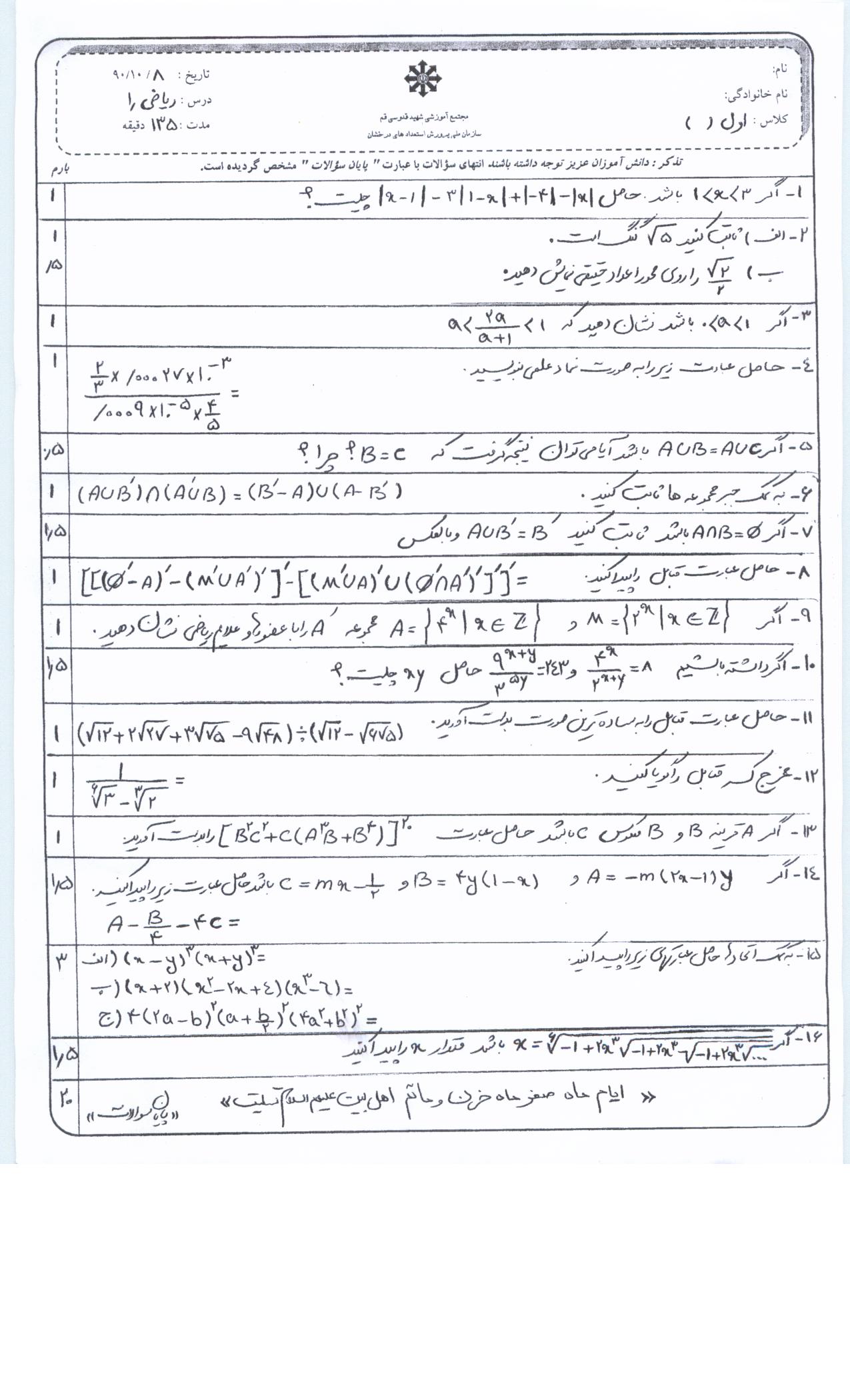 بلاگ خیلی اختصاصی کلاس اول 1 دبیرستان مجتمع آموزشی شهید قدوسی قم (تیزهوشان)