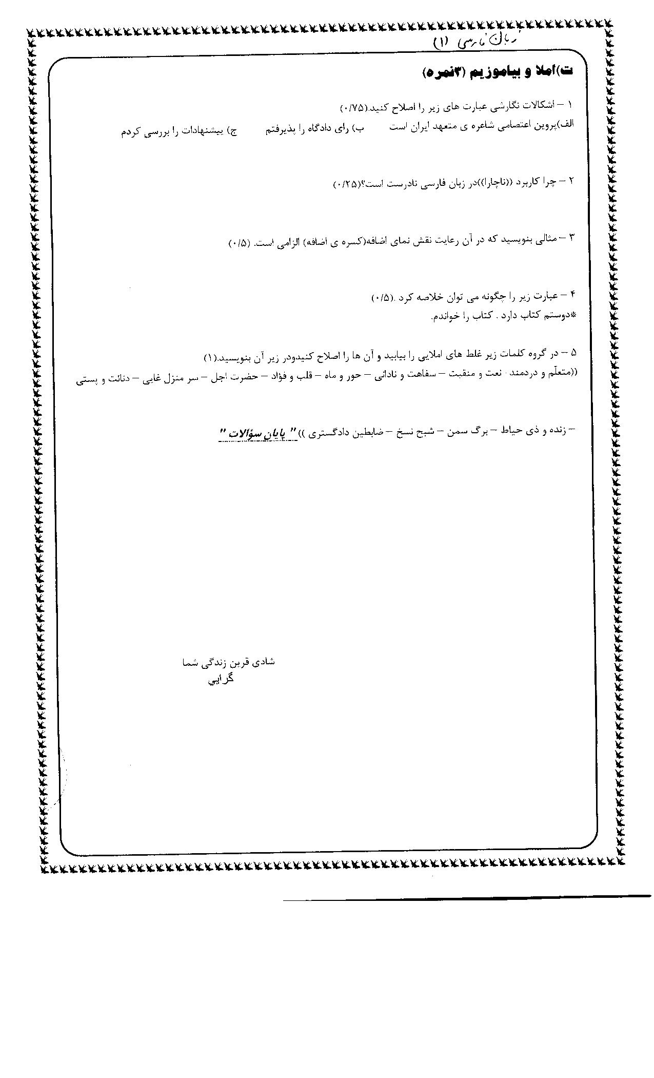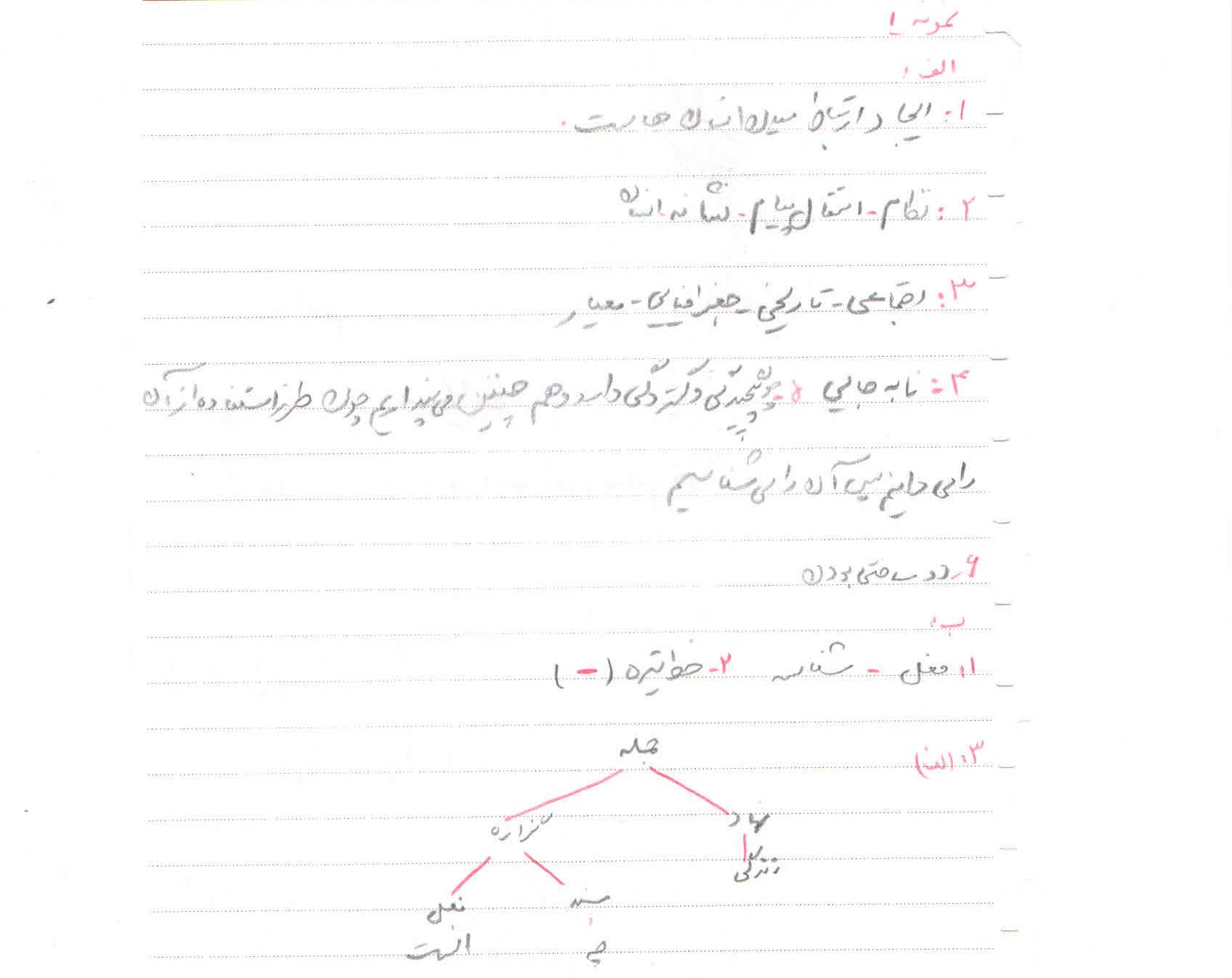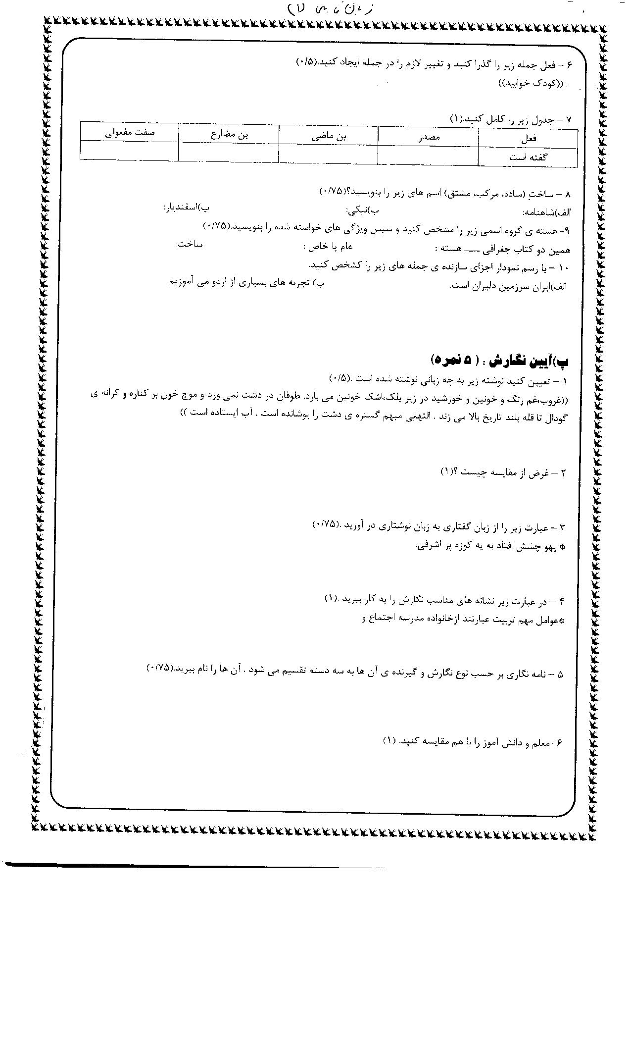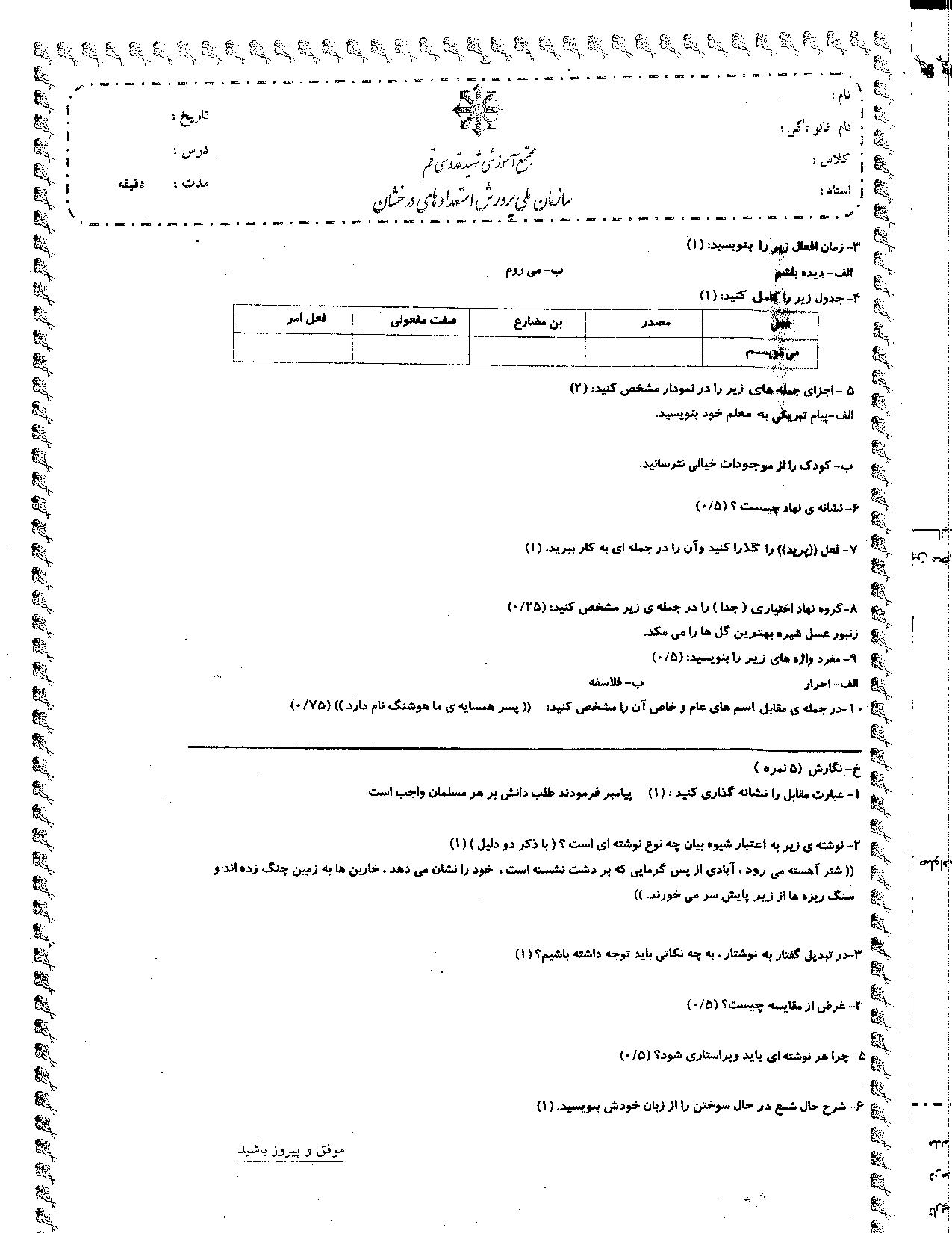 نمونه سوال زبان فارسی نوبت اول + پاسخ